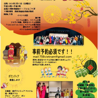 2月15日はテット(旧正月)祭りです みなさん来てください 参加には事前予約が必須です。メール(758vietnam@gmail.com)で1)お名前、2)ご所属(教室名等)3)連絡先をお知らせください 前の記事